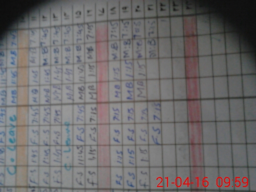 | Monitoring Date: 21-04-2016 | Start Time: 21-04-2016 09:40 AM | End Time: 21-04-2016 10:01 AM | Name of MEA: MU**** YO**** (R**** | |