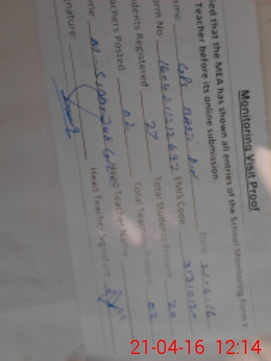 | Certified that this School was Inspected by the Undersigned MEA/DMO Today and the Information Stated Above is as Per Record. | |||||