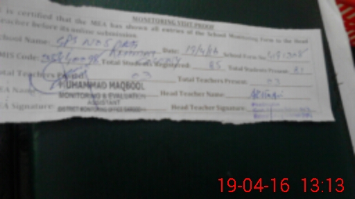 | Certified that this School was Inspected by the Undersigned MEA/DMO Today and the Information Stated Above is as Per Record. | |||||