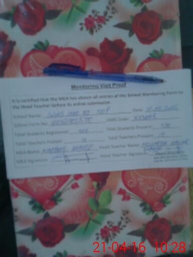 | Certified that this School was Inspected by the Undersigned MEA/DMO Today and the Information Stated Above is as Per Record. | |||||