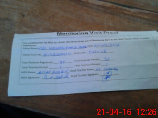 | Attendance Register | Head Teacher | MEA with School | Visit Proof |