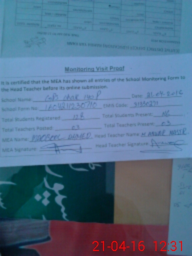 | Certified that this School was Inspected by the Undersigned MEA/DMO Today and the Information Stated Above is as Per Record. | |||||