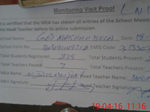 | Certified that this School was Inspected by the Undersigned MEA/DMO Today and the Information Stated Above is as Per Record. | |||||