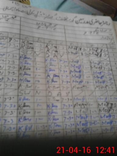 | CNIC | Full Name | Designation | R/C | Absence During Last Calender Month |