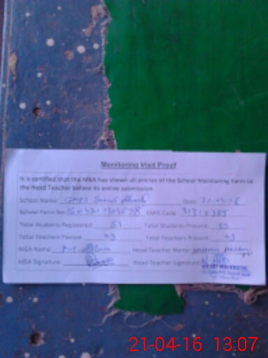 | Attendance Register | Head Teacher | MEA with School | Visit Proof |