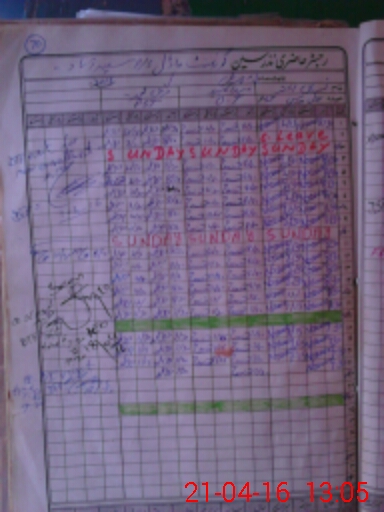| CNIC | Full Name | Designation | R/C | Absence During Last Calender Month |