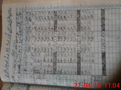| CNIC | Full Name | Designation | R/C | Absence During Last Calender Month |