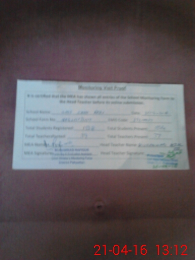 | Attendance Register | Head Teacher | MEA with School | Visit Proof |