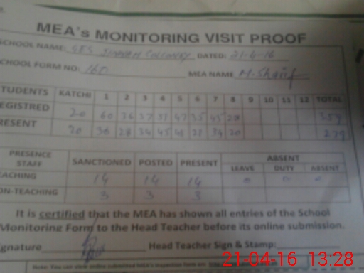 | EMIS Code: 36410069 | Name of School: GHS JINNAH COLONY, ABDUL HAKIM | |||