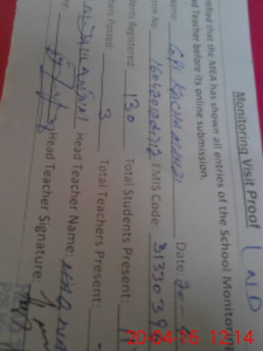 | EMIS Code: 31330396 | Name of School: GPS KACHA MAHZI | |||