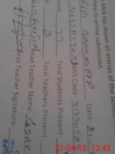 | Certified that this School was Inspected by the Undersigned MEA/DMO Today and the Information Stated Above is as Per Record. | |||||