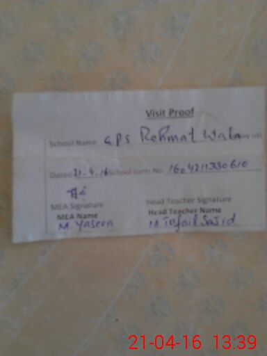 | EMIS Code: 39310248 | Name of School: GPS REHMAT WALA | |||