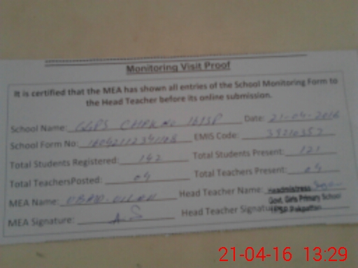 | Attendance Register | Head Teacher | MEA with School | Visit Proof |
