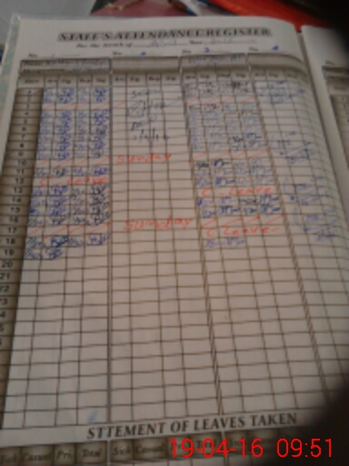 | CNIC | Full Name | Designation | R/C | Absence During Last Calender Month |