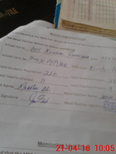 | Certified that this School was Inspected by the Undersigned MEA/DMO Today and the Information Stated Above is as Per Record. | |||||