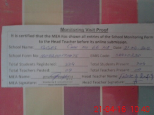 | EMIS Code: 38420230 | Name of School: GGHS CHAK NO.66 NB | |||