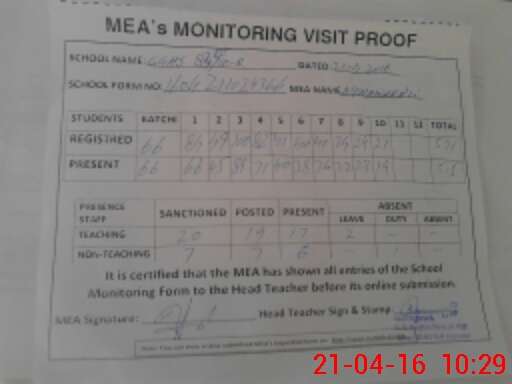 | Certified that this School was Inspected by the Undersigned MEA/DMO Today and the Information Stated Above is as Per Record. | |||||