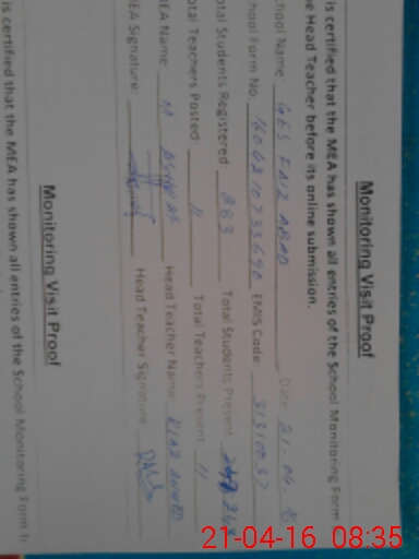 | EMIS Code: 31310037 | Name of School: GES FAIZ ABAD KHANPUR | |||