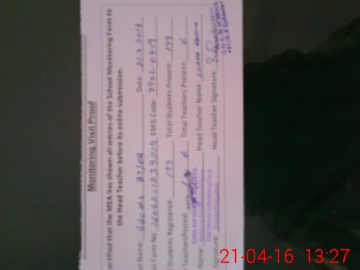 | Attendance Register | Head Teacher | MEA with School | Visit Proof |
