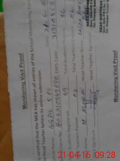| EMIS Code: 31310453 | Name of School: GGPS CHAK NO.5/P-I | |||