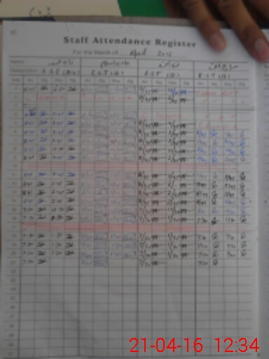 | CNIC | Full Name | Designation | R/C | Absence During Last Calender Month |