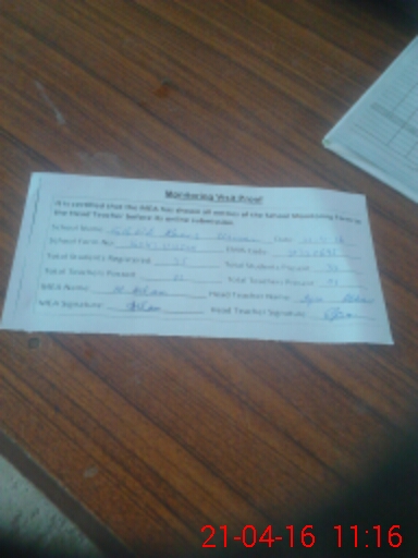 | Attendance Register | Head Teacher | MEA with School | Visit Proof |