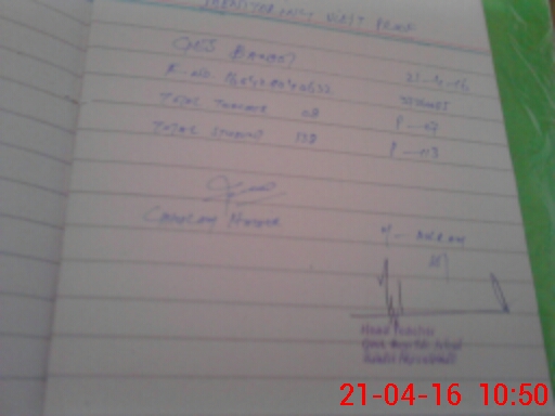 | Monitoring Date: 21-04-2016 | Start Time: 21-04-2016 10:12 AM | End Time: 21-04-2016 10:51 AM | Name of MEA: Gh**** Ha**** | |