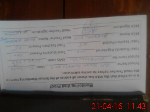 | Attendance Register | Head Teacher | MEA with School | Visit Proof |