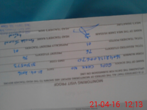 | Monitoring Date: 21-04-2016 | Start Time: 21-04-2016 11:49 AM | End Time: 21-04-2016 12:14 PM | Name of MEA: Za**** Hu**** | |
