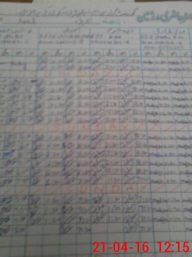| CNIC | Full Name | Designation | R/C | Absence During Last Calender Month |