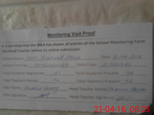 | EMIS Code: 31320482 | Name of School: GGPS RASHEED ABAD | |||