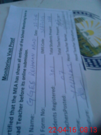 | Certified that this School was Inspected by the Undersigned MEA/DMO Today and the Information Stated Above is as Per Record. | |||||