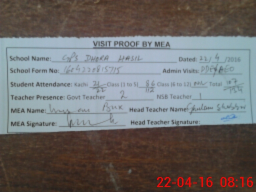 | EMIS Code: 32430040 | Name of School: GPS DHORA HASIL | |||