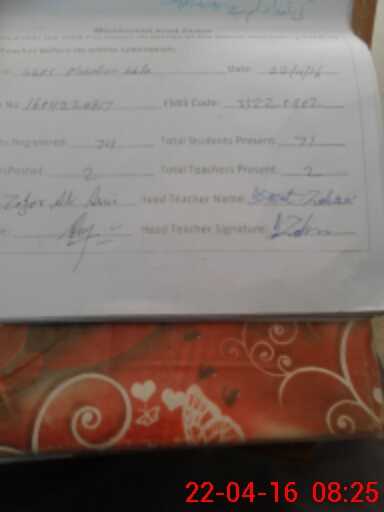 | Name: IS**** ZA**** Designation: (School Headmaster's/Headmistress's) PST/PTC/JV Phone/Cell Number: 03**** |