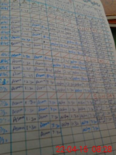| Monitoring Date: 22-04-2016 | Start Time: 22-04-2016 08:11 AM | End Time: 22-04-2016 08:33 AM | Name of MEA: Sh**** Ra**** | |