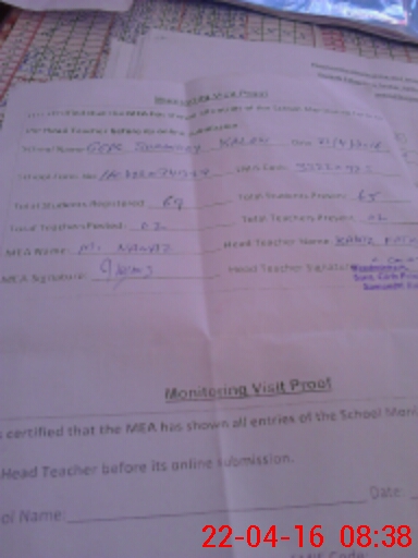 | Attendance Register | Head Teacher | MEA with School | Visit Proof |