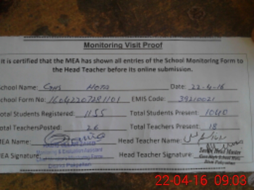 | Attendance Register | Head Teacher | MEA with School | Visit Proof |