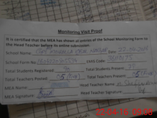 | EMIS Code: 36110175 | Name of School: GES MC IQBAL NAGAR | |||