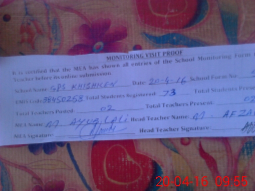 | EMIS Code: 38450258 | Name of School: GPS KHISHKAN | |||