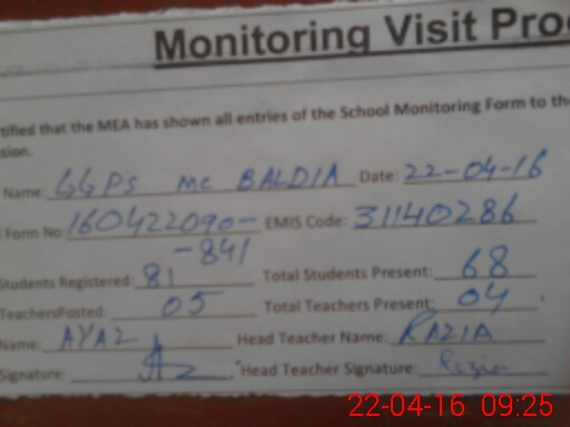 | EMIS Code: 31140286 | Name of School: GGPS MC BALDIA COLONY | |||