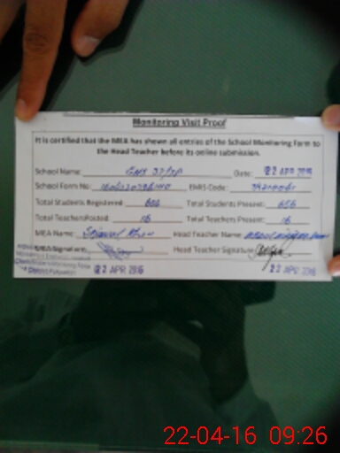 | Certified that this School was Inspected by the Undersigned MEA/DMO Today and the Information Stated Above is as Per Record. | |||||