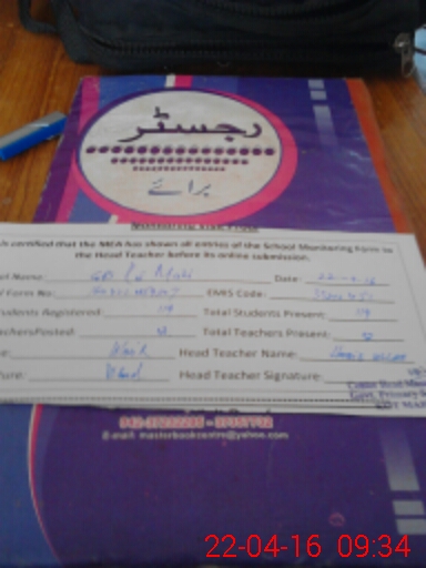 | Attendance Register | Head Teacher | MEA with School | Visit Proof |
