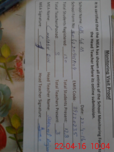 | Certified that this School was Inspected by the Undersigned MEA/DMO Today and the Information Stated Above is as Per Record. | |||||