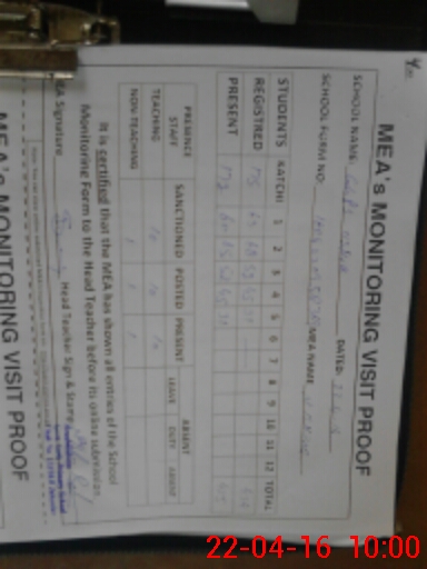 | Attendance Register | Head Teacher | MEA with School | Visit Proof |