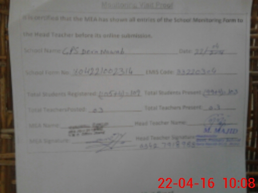 | Certified that this School was Inspected by the Undersigned MEA/DMO Today and the Information Stated Above is as Per Record. | |||||