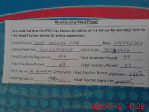 | EMIS Code: 32330402 | Name of School: GGPS MUNDA PEER | |||