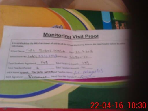 | Attendance Register | Head Teacher | MEA with School | Visit Proof |