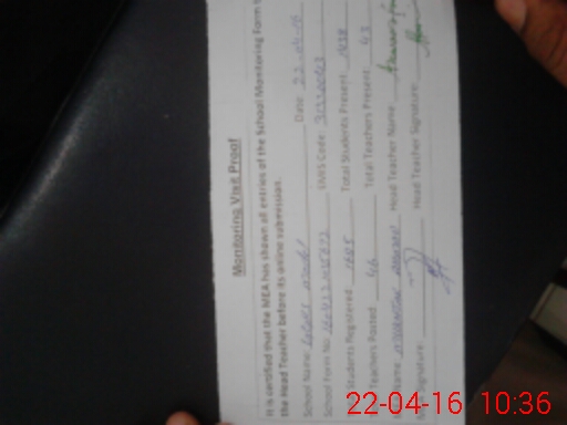 | Attendance Register | Head Teacher | MEA with School | Visit Proof |