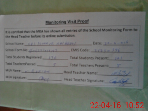 | Certified that this School was Inspected by the Undersigned MEA/DMO Today and the Information Stated Above is as Per Record. | |||||