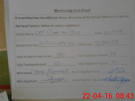 | Certified that this School was Inspected by the Undersigned MEA/DMO Today and the Information Stated Above is as Per Record. | |||||